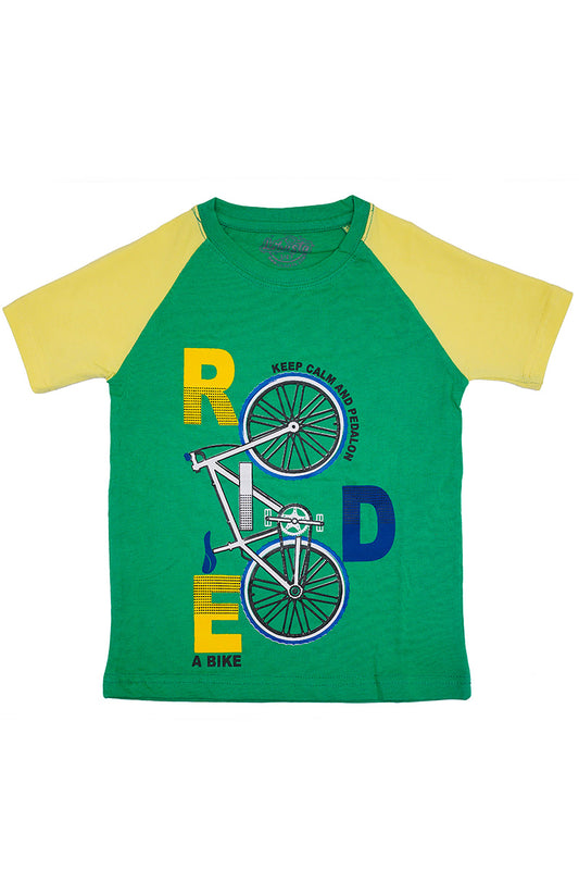Bicycle Printed Raglan T-Shirt – Green, 100% Cotton, Short Sleeve