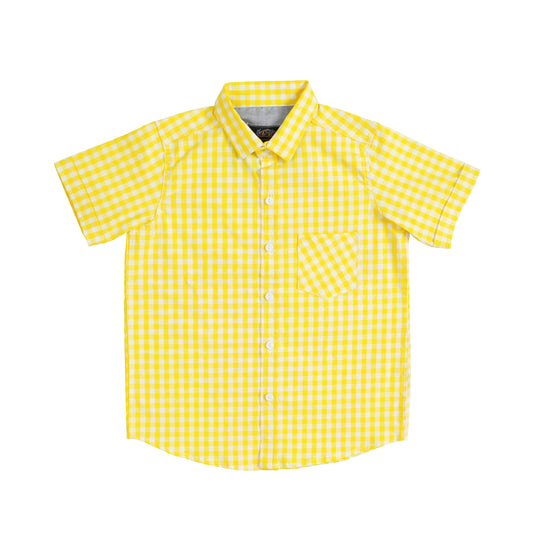 Boys' Yellow & Black Checkered Casual Shirt – 100% Cotton, Short Sleeve, Button-Up