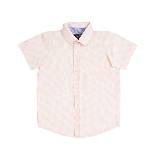 Boys' Printed Cotton Shirt – Tea Pink, Short Sleeve, Button-Up, Stylish & Comfortable