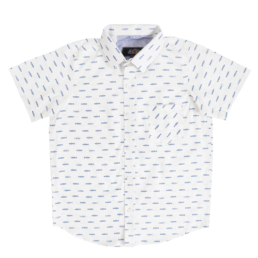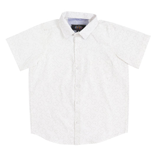Boys' Printed Cotton Shirt – Fresh White with Fun Design, Short Sleeve, Comfortable & Stylish