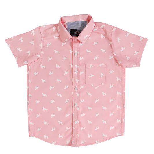 Boys' Printed Cotton Shirt – Tea Pink, Short Sleeve, Button-Up, Soft & Stylish