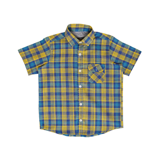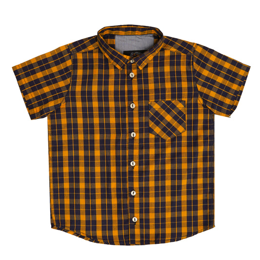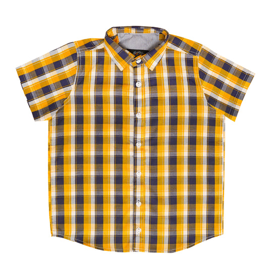 Boys' Checkered Casual Shirt – Navy & Yellow Cotton Shirt for Everyday Style