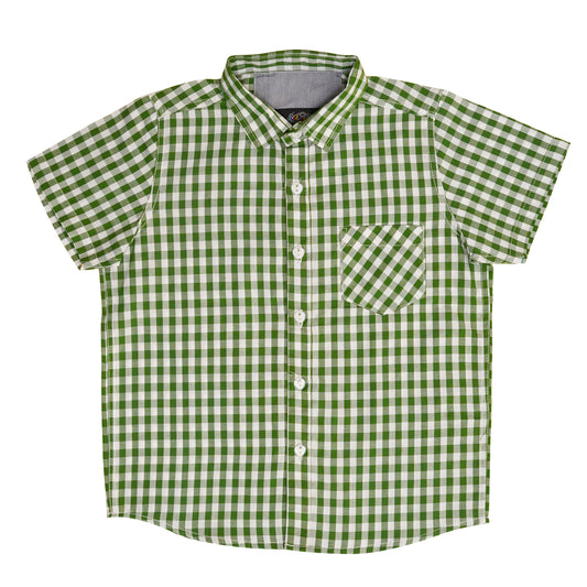 Boys' Checkered Casual Shirt – Green & White Cotton Shirt for All-Day Comfort