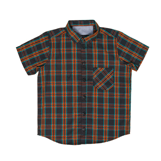 Boys' Checkered Casual Shirt – Black & Orange Cotton Shirt for Play & Comfort
