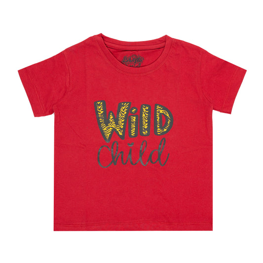 Wild Child Printed T-Shirt – Maroon Cotton Tee for Playful Style