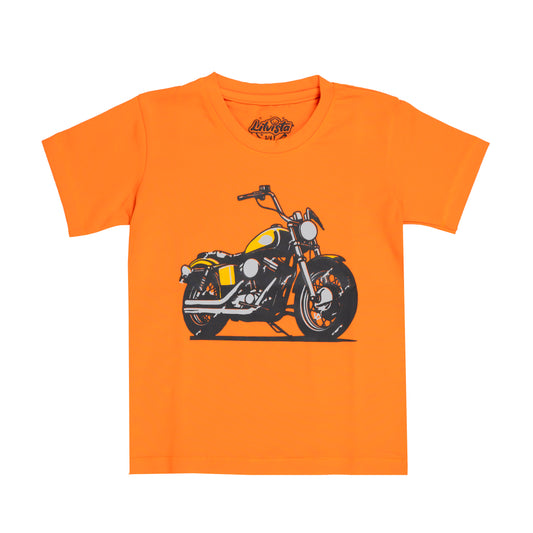 Motor Bike Printed T-Shirt – Fun Orange Cotton Tee for Playful Days