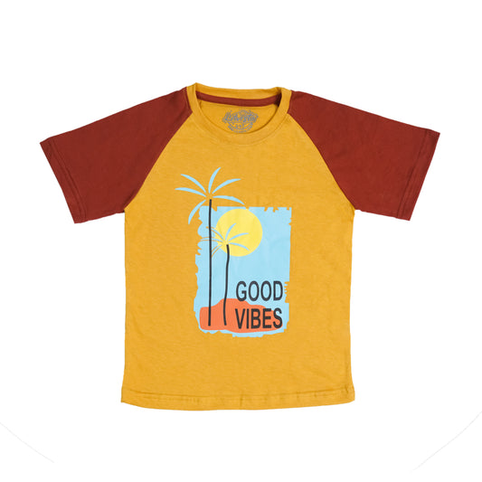 Good Vibes Raglan T-Shirt – Mustard Cotton Tee for Everyday Comfort